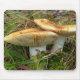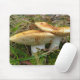 Un duo de champignons sauvages pousse à travers les débris et les détritus du plancher forestier