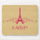 Elégant et chic Mousepad à la française, avec un faux arrière - plan à la silhouette de bois et un design tour Eiffel en magenta orné de cascades de tourbillons élégants. Ce design girly et tendance est facile à customiser avec le texte personnalisé de votre choix. Cliquez sur "Customiser" pour trouver d'autres options de personnalisation.