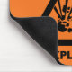 Mousepad orange avec un symbole explosif noir de risque.