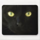 Tapis de souris personnalisable pour des amoureux de les chats avec la photographie en couleur comportant un portrait en gros plan d'un chat de noir de jais avec de beaux yeux verts. Vous pouvez le personnaliser avec le texte fait sur commande