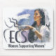Mousepad avec le logo de la CECA et le graphique d'une femme tachant la sauge avec une plume.