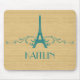 Elégant et chic Mousepad à la française, avec un faux arrière - plan à grain de bois et un design Tour Eiffel en turquoise orné de cascades de tourbillons élégants. Ce design girly et tendance est facile à customiser avec le texte personnalisé de votre choix. Cliquez sur "Customiser" pour trouver d'autres options de personnalisation.