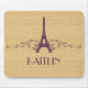 Elégant et chic Mousepad à la française, avec un faux arrière - plan à grain de bois et un design Tour Eiffel en violet orné de cascades de tourbillons élégants. Ce design girly et tendance est facile à customiser avec le texte personnalisé de votre choix. Cliquez sur "Customiser" pour trouver d'autres options de personnalisation.