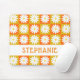 Ce tapis de souris personnalisé présente un design floral rétro avec marguerites blanches sur arrière - plan de damier jaune et orange moutarde. Personnalisez le nom.