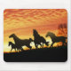 Un troupeau de mustangs sauvages galopent en bas de la colline avec les feux d'un coucher du soleil derrière eux. Art d'ordinateur par Kathie Miller.