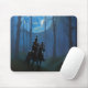 Tapis De Souris Mystérieux Chevalier Noir dans la Forêt Lune