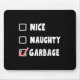 Tapis De Souris Noël drôle Nice Naughty Garbage Trump Soutien