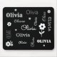 Tapis De Souris Noir avec Fleurs blanches, Pad de souris Customisé