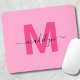 Script rose Fille Personnalisé Premier Monogramme Souris Pad. Ajoutez une pop de plaisir et de charme féminin à votre espace de travail avec ce pavé de souris chic. Doté d'un arrière - plan rose vif et joyeux, d'une initiale rose vif magenta et d'un nom de script noir élégant, ce design est parfait pour n'importe quelle petite fille. Idéal pour les soeurs de sororité, les étudiants, ou toute personne qui aime les accessoires personnalisés et élégants. Ce tapis de souris fait un cadeau réfléchi pour les amis, les mamans, ou toute occasion spéciale comme les anniversaires ou les fêtes. Mélange parfait de ludique et poli, il élève l'essentiel de votre espace de travail avec une touche personnalisée.
