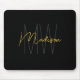 Tapis De Souris Nom Monogramme moderne Script Black Gold