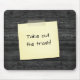 Note jaune avec ruban sur arrière - plan en bois gris foncé. Le texte est modifiable.