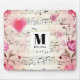 Mousepad au design élégant et nostalgique. Partition décorée d'un grand coeur rose et de roses roses roses et de fleurs sauvages aux bords.
