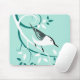 Art ornithologique sur les mousepads avec un Nuthatch sur les branches motifs tourbillonnantes et feuilles décoratifs sur arrière - plan bleu clair.