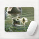 Premier jour sur le lac pour de nouveaux oisons et leurs parents.