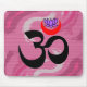 Produit: yoga mousepads — Design : symbole om unique avec lune de croissant rouge et lotus violet — Arrière - plan: abstrait rose