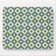Ce motif moderne de la moitié du siècle comporte l'or et des formes bleues.