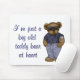 Ce tapis de souris comporte un ours de nounours dur utilisant un T-shirt et des jeans de bleu marine avec des lunettes de soleil et un tatouage d'AMOUR sur son bras. Il peut sembler dur mais il est vraiment mou au coeur.