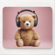 Un mignon ours en peluche brun portant un casque isolé sur un arrière - plan rose.