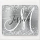 Tapis De Souris Paillettes Argentées Feuille Noir et Blanc Monogra