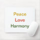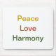 Peace Love Harmony. C'est un adage sympa pour les salutations de saison ou à tout moment de l'année. Design minimaliste or vert rouge.