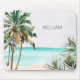 Tapis De Souris Palmier tropical Monogramme Plage Bleue Feuille