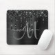 Ajoutez une touche de parties scintillant et de glamour à votre bureau ou dortoir à l'aide de cet élégant tapis de souris personnalisé. Ce modèle design chic dispose d'un gros monogramme de script gris et de votre nom en blanc pour personnaliser sur un arrière - plan de texture métallique brossée noire accentué par une bordure de parties scintillant faux goutte. Un cadeau féminin unique pour l'anniversaire, les fêtes et toute occasion spéciale. Conçu pour vous par des Tee - shirts extrêmes !