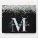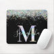 Une fausse parties scintillant holographique irisée sur noir jumelée à une lettre monogramme M graphique. Nom de calligraphie glamour fille coordonnant couleurs pastel arc-en-ciel et texte monogramme blanc... style et couleur personnalisable. La parties scintillant brillante est un élément graphique qui s'imprime comme une photo sur ce cadeau. Vous pouvez trouver des designs graphiques similaires dans la catégorie Monogramme par lettre.