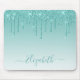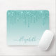 Moderne Elégant Mode et tendance Parties scintillant Turquoise Souris Pad personnalisé avec votre nom. Script élégant. Parties scintillant à goutte avec étincelles.