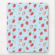 Une motif joyeuse remplie de fraises peintes à la main, de minuscules fleurs blanches et de feuilles verts sur un arrière - plan pastel bleu clair. Idéal pour les produits à thème printanier ou les imprimés en tissu mignon.