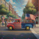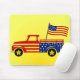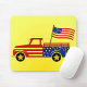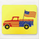 A bold, Americana‑themed mousepad featuring a star‑spangled pickup truck and bright yellow backdrop—perfect for adding festive, patriotic flair to any workspace.