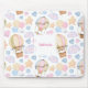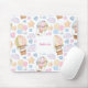 Un tapis de souris avec un motif mignon et lunatique. Ballons à air chaud et nuages mignons avec des visages parmi les étoiles, les coeurs et les ballons. Des couleurs pastel douces composent cet adorable design. Un carré blanc superposé avec votre texte à l'intérieur.