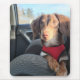 Kio est un Dachshund assis dans un siège auto attendant d'aller au magasin.