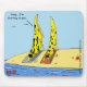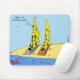 Deux bananes prennent le soleil sur la plage. La peau de l'une des bananes commence à se détacher. Légende : "Dang ! Je commence à peler."