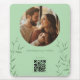 Bring harmony to your workspace with our 'Working to Our Rhythm' personalized mouse pad. This design features a minimalist botanical aesthetic in a soft sage green, with delicate leafy branches framing your favorite circular photo.