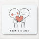 Add a touch of love to your workspace with this personalized Valentine’s couple matching mouse pad. Featuring a sweet minimalist illustration of a couple holding a heart and customizable names, this mouse pad combines romance and function in a modern, clean design.