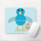 Cette mousepad présente un dessin mignon d'un poussin bleu. Le poussin a un ventre bleu pâle et des ailes bleues foncées et la tête avec un bec et des pieds jaunes. À côté de la poussette se trouve un petit oeuf. Il y a du texte personnalisable pour que vous puissiez personnaliser ce design avec l'âge et le nom du destinataire.