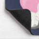 Tapis de souris avec une adorable illustration graphique. Un chaton blanc avec une jolie image empreinte de patte sur sa fourrure. Dormir tranquillement. Un grand coeur rose derrière elle et quelques petites étoiles aussi. Arrière - plan bleu foncé. Texte : Personne de chat.
