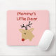 Un renne avec un nez rouge et un texte rouge qui dit "La petite chère de maman" sur des sacs fourre-tout personnalisables, des T-shirts, et plus encore.