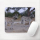 Double Take Zebras Nature Les photos et les cadeaux présentent une belle photographie de deux zèbres qui regardent tous deux le spectateur pris lors d'une pause snack par Kurt Keller avec un appareil photo de 35 mm pendant un safari africain au Botswana, en Afrique du Sud et au Zimbabwe. Chaque zèbre est unique porte son propre motif de rayures malgré la double prise. Quiconque aime les animaux africains, la faune et la flore, et tous les amateurs de zèbres apprécieront cette belle photo d'un deux zèbres debout dans la savane