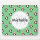 Cette illustration graphique présente des pingouins de Noël mignons. Ces adorables pingouins noirs et blancs portent une écharpe rouge et un casquette rouge. Surplombant l'arrière - plan est un sceau de cercle monogramme blanc pour personnaliser facilement avec votre propre nom et votre initiale. Ce produit est amusant à garder pour vous-même ou à donner à un ami comme cadeau de conservation. Changez la couleur de police, le style de police ou ajoutez vos propres photos en cliquant sur le bouton "Customiser".