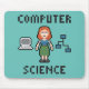 Illustration d'art de pixel dépeignant un informaticien féminin, un ordinateur et un fluxogram.