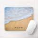 Mousepad avec une photo d'une plage de sable brun doré au surf mousse blanc.