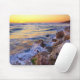 Plaquette de souris avec photo d'une belle scène de coucher de soleil rocheux sur la plage. Customisez cet objet ou achetez tel quel. Image stock
