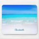 Un tapis de souris personnalisé avec une plage de sable tropical. Une magnifique mer turquoise au loin et des eaux cristallines qui caressent une plage de sable. Un ciel bleu vif dans l'arrière - plan.