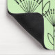 Ce pavé de souris a un design moderne du milieu du siècle de plantes faits de lignes, cercles, triangles, rectangles et carrés en noir sur un arrière - plan vert.