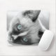 Tapis de souris avec un chaton blanc aux yeux bleus mignon avec une bande blanche sur le nez. Photo prise à Pasadena, Californie.
