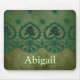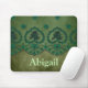 OEuvre d'art, ce chic tapis de souris de style victorien présente un dessin de dentelle verte avec votre nom ou texte écrit dans une jolie police de caractère vert clair. Commandez les vôtres dès aujourd'hui ! Conception Arrière - plan : https://www.etsy.com/shop/OriginsDigitalCurio