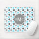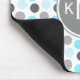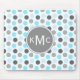 Motif pois tendance, chic, bleu girly et gris avec trio personnalisable de monogrammes représentant vos prénoms, derniers et moyens. Un cadeau cool, moderne, géométrique monogrammé pour elle.