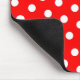 Points blancs sur un fond rouge vif. Le motif à pois blancs est incliné en diagonale.