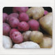 Ce mousepad de photographie de beaux-arts comporte des sorts de pommes de terre organiques colorées, juste moissonnés et tout préparés, en couleurs de rouge, de pourpre, de rose, de jaune, de brun et blanc. Chaque pomme de terre a sa propre forme unique.